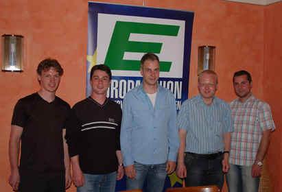 Bei seiner jüngsten Versammlung im Weinhaus „Weber am Bach“ in Memmingen haben die Mitglieder des Kreisverbandes der Jungen Europäer Stefan Porkert zu ihrem neuen Vorsitzenden gewählt. Der Werbegrafiker will die Jugendorganisation der Europa-Union zu einer neuen Blüte führen und vor allem neue Mitglieder gewinnen: „Wir müssen es endlich wieder schaffen, dass sich die Menschen für Europa interessieren“, so Porkert. Die Jungen Europäer setzen dabei auch auf einen guten Kontakt zu den Schulen, haben hier aber bei weitem nicht nur die gymnasiale Oberstufe im Blick; so sollen beispielsweise angehende Bankkaufleute ebenso angesprochen werden, wie junge Handwerker oder freiberuflich Tätige. Der neue Vorsitzende ist sich sicher: „Europa ist kein Bürokratiemonster, sondern die Zukunft für uns alle. Offene Grenzen innerhalb Europas sind heute ebenso eine Selbstver-ständlichkeit wie zwischen Jugendlichen aus vielen Ländern Kontakte und Freundschaften zu pflegen. Hier wollen wir ansetzen: man muß Europa mit dem Herzen leben.“