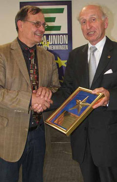 Es ist eine Anerkennung für sein beispielhaftes europäisches Engagement in vielfältigen Aktionen, Initiativen und Programmen für die junge Generation, sagte der Vorsitzende der Europa-Union, Lajos Oszlari. Diese Auszeichnung werde von der Europa-Union Memmingen in unregelmäßigen Abständen verliehen - der letzte Preisträger sei 2005 Oberbürgermeister Dr. Ivo Holzinger gewesen (siehe auch Info-Kasten).
